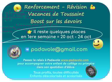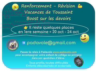 Padavole propose un accompagnement scolaire primaire et collège sur mesure qui va au delà du soutien et du renforcement.